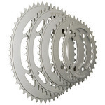 4アーム用 チェーンリングノーマルのギア比では、ピッタリこないという方にチェーンリングの交換は有効な手段です。4アームのMTBから、ロードバイクのノーマルクランク用、コンパクトドライブ用まで幅広く揃えた、7〜9スピード対応チェーンリング。クランクはそのままで、ワイドなギア比の変更に対応できます。□仕様□・素材:アルミ・歯数:48T・PCD:104mm・SPEED:7〜9・カラー:シルバー