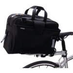 3本のベルトで脱着は楽々。2箇所は底部に、もう1箇所はシートポストなどに固定することで前後の揺れを抑えます。サイズは大小2つ。書類も楽々入ります。3ケ所の反射テープは取り外し可能。