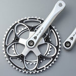 マイティーツアー PE110S ギアクランクコンパクトロードからツーリングバイクまで幅広く使えるP.C.D.110mmモデル。CNC加工のクランクアーム。最も厳しいとされる”欧州EN規格”レース基準に合格しています。製品仕様----------------------------------------------------------P.C.D. 110mm システム 4テーパ−(JIS)※1 クランク 高強度、高硬度、アルミ合金鍛造チェーン互換性 SHIMANO 10s / 9s /SRAM 10sチェーンライン 43.5mm B.B. 110mm (CBBAL-110)チェーンリングカラー:ブラッククランクカラー:シルバークランク長さ:165mm歯数:46T-36T ※1)JISテ-パ-B.B.は、ISOテーパ-のクランクと互換性はありません。製品の仕様は予告なく変更される場合があります。予めご了承ください。注意)自転車への取付・調整は、専門店にご相談下さい。正しく取付及び、調整をされなかった場合は、破損や重大な事故につながる恐れがあります。