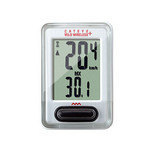 ※2CO2削減量は「走行距離(km)x0.15=CO2削減量(kg)」という計算式で算出します。係数0.15 は国土交通省ホームページ記載の「ガソリン車1km走行におけるCO2排出量」の数式に2008年度ガソリン乗用車全体の平均値を当てはめて求めています走行速度: 0.0(4.0)〜105.9 km/h 走行時間 [ Tm ] : 0:00'00"〜9:59'59" 走行距離 [ Dst] : 0.00〜999.99 km 平均速度 [ Av ] : 0.0〜105.9 km/h 最高速度 [ Mx ] : 0.0(4.0)〜105.9 km/h 消費カロリー [ Cal ] : 0 〜99999 kcal CO2 削減量 [ CO2 ] : 0.00〜999,99 kg 積算距離 [ Odo ] : 0〜99999 km 時計 : 0:00'〜23:59' [1:00'〜12:59'] (12時間・24時間表示選択可) ペースアロー : 走行速度が平均より速いか遅いかを表します ワイヤレス: スピード 節電機能: 約10分間信号が入らないと時刻表示だけの節電モードになります 節電モードからさらに2週間放置すると画面にSLEEPを表示 SLEEP表示ではMODEボタンを押すことで計測画面にもどります。 オートモード: ○(オート専用機) タイヤ周長セット範囲: 26" , 700c , 27" , 16" , 18" , 20" , 22" , 24 または タイヤ周長 100 cm〜299 cm (初期値:26インチ) 電源: コンピュータ(受信部): CR2032 x1 センサー(送信部): CR2032 x1 電池寿命: コンピュータ:約1年(1日1時間使用時)センサー:積算距離で約10,000 km サイズ: 55.5 X 35.0 X 18.5 mm 重量: 約28g