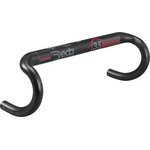 ハイエンドモデルのカーボンバー"スーパーレジェラ"デダ エレメンティのハンドルバー“M35 RHM”とステム“トレンタチンクエ(「35」のイタリア語発音)”はハイアマチュア、プロフェッショナル用コンポーネントとレーシングバイクの分野にとって革新的な発明といえます。35mmの直径を持つハンドルバーはこの世には他に存在しません。ハンドルバーの直径の大きさは、ハンドルバーセクションの慣性モーメントの大きさ(ねじれにくさ)に直結します。慣性モーメントの大きさ、すなわちねじれ剛性の高さがハンドルバーセクション全体の剛性を司るのです。ハイアマチュア、プロフェッショナルがハンドルバーセクションに求めるもの−それは彼らの貴重なパワーを余すことなく推進力に変えることができる剛性です。31.7mmのハンドルバーと比較すると、35mmのハンドルバーは約50%剛性が向上します。ハンドルバーのドロップ部の両端に300Nの力をかけたときの31.7mmのハンドルバーの最大のたわみ量が3.318mmなのに対し、35mmのハンドルバーのたわみ量は最大で1.609mmです。この1.709mmの違いは剛性にして51.5%の向上を意味します。•組み付けには必ず正しく調整された正確にトルク管理が出来るトルクレンチを用い、指定トルクでの締め付けを守ること。•本製品のハンドルクランプ径は35.0mmです。他社製ステムとの組合せは考慮されておりません。必ずDEDA ELEMENTI社製35.0mmクランプのステムと組み合わせてご使用ください。サイズが適合しない組合せで使用された場合、規定トルクで締め付けを行ってもクランプの破損やハンドルの折損が起こる場合があります。•軽量パーツなど、高価なパーツほど競技用部品として耐久性よりもパフォーマンスを優先して設計されております。デダエレメンティ社では競技用部品に関して使用状況によりおよそ2 〜 4 年で使用を中止し新品に交換するよう指示されております。•上記注意点を守らずご使用になられた場合には、規定されたメーカー品質保証は適用されない場合がありますのでご注意ください。ドロップ:130mmリーチ:75mmサイズ:420mm(外-外)カラー:ブラックオンブラック重量:182g