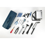 毎年8月に行われる「自転車技士」「自転車安全整備士」の試験技能試験用として、セットアップされた工具セット。