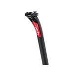カーボンモノコック構造の、25mmセットバックを備えた新しいスーパーゼロシートポストは非常に軽量です。1ボルトクランプシステムにより、簡単でスピーディーな組み立てが可能。サドル傾斜角の微調整は、シートポストヘッドの調整ネジを介して可能です。楕円形のカーボンレールに対応。