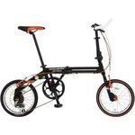 16インチ折りたたみ自転車 111 Roadfly(ロードフライ)DOPPELGANGER®104をベースとしたレーサーエディションモデル 16インチのロングホイールベースに、SHIMANOカセット式スモールスプロケット・大径チェーンホイールを備えた、コンパクトでいてスピーディな一台。 □製品仕様□全長:1360mm 折りたたみ寸法:520×800×340mm ※ペダルは含まず 重量:10.8kg※ペダル、保安部品(ライト、リフレクター、ベル)、 ワイヤーロックを取り外した状態です。 サドル高:560-900mm ハンドル高:840-930mm ハンドル幅:455mm タイヤサイズ:16×1.25inch フレームカラー:[ツートンカラー]カーボンブラック×フラッシュオレンジ フレーム材質:アルミニウム フロントフォーク材質:スチール 変速機:シマノ7段変速ペダル:固定式ペダルVP-990A シフトレバー:シマノサムシフター右:7段 フリーホイール:MIN:12T×MAX:28T チェーンホイール:52 ブレーキ:前後:Vブレーキ 最大乗車重量(積荷を含む):100kg未満 入り数:1 梱包重量:14.4kg カートンサイズ:820×540×360mm バルブ形式:英式バルブ(ウッズバルブ) 工具取扱説明書(保証書含む)タイダウンベルトスタンド(本体取付済)ナットキャップ×4□構成部品フォーク:スチール BC1-1/8"×123mm リム:アルミニウム 16"×14G×20H スポーク:スチール F:144mm, R:135/132mm フロントハブ:アルミニウム φ3/8"×145mm×100mm×14G×20H リアハブ:アルミニウム φ3/8"×185mm×130mm×14G×28H ハンドルバー:アルミニウム W:430mm ハンドルステム:アルミニウム L:180mm シートポスト:アルミニウム φ27.2×500mm クランク:アルミニウム 165mm チェーン:1/2"×3/32"×102LINK ブレーキレバー:アルミニウム ボトムブラケット:カセット式 BC1.37×24TPI (68-116mm)