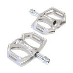 ■M194 CNCアルミフラットペダルカラー:チタンシルバー素材: アルミニウム 6061 重量: 247g サイズ: 90.1mm x 64.8mm x 27.7mm ベアリング : シールドスピンドル : クロモリ・材質に強度、耐食性ともに優れ、特に強度が高いとされる「6061 アルミニウム」を採用しました。・CNC加工による高精度なアルミ切削処理で、高い強度とハイセンスなデザインを両立しています。・アルミニウムの耐食性や耐摩耗性を向上させ、鮮やかなカラーを着色させ装飾した「アルマイト」表面処理。・スムーズなペダリングが可能なシールドベアリングを採用しました。・取り外し可能なピンが8ヶ所配置されており、グリップ力を高めます。