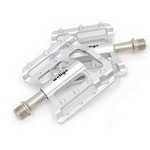 C234MG マグネシウムライトペダル カラー:シルバー素材 マグネシウム 重量 188g サイズ 96mm x 78mm x 20.5mm ベアリング : シールドスピンドル : クロモリ ・フラットペダルのデザイン特性を引き出すのにふさわしい「マグネシウム」を材質に使用・マグネシウムはアルミニウムより軽量でありながら比強度が高いため、強度を犠牲にすることなく軽量化(肉抜きおよび高さを抑えたフラットなデザイン)が可能・広い踏面でしっかり足裏を捉え、マグネシウムの特性でもある剛性の高さと振動・衝撃吸収性にも優れるためダイレクトなパワー伝達が可能・スムーズなペダリングへとつながるシールドベアリングを採用・取り外し可能なピンは、グリップ力を高めるようペダルの前後両面に無駄のない配列