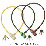 P-ESDL12-90 蓄光ワイヤーロック付属品 マジックバンド、ディンプルキー3本 カラー:バニラ素材 スチール 加工 樹脂 サイズ ワイヤー寸法 : φ 12mm x 900mm ・ロングヒットを続けた蓄光ワイヤーロックが、ワイヤー部とヘッド部を同系カラーに合わせ、ポップなカラーネーミングでリニューアルしました。・蓄光パワーで鍵穴が光り、暗闇でのオープンがスピーディーに行えます。・車体に傷が付きにくいよう、ヘッド部の樹脂にエラストマーを採用しました。・不正開錠されにくいディンプルキーを採用、安心のキー3本付属です。・ワイヤーをまとめるバンド付きで、コンパクトに収納できます。