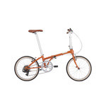 Boardwalk D7 20インチ 折り畳み自転車 2015年モデルカラー:キャラメルオレンジスマートに乗りこなしたい人気のクロモリフレームバイク。デザインがリニューアルされて、アクセントとして輝くトップチューブのバッジが、シンプルながらこれまでとは一味違う上品さを演出してくれる。変速:7 Speed(1×7) ホイール:Size 20"(406) 重量:12.3kg 適応身長:142〜193cm Saddle to Pedal Min:675mm Max:945mm 折りたたみサイズ:W78×H65×D34cm フレーム:20" HA Series, SuperLite 4130 chromoly, ViseGrip technologies フォーク:Integrated, patented Fusion technology, steel Handlepost/Stem Radius , adjustable with new QR lever, Inside folding, H:340-440mm, 8deg. / Silver ハンドルバー:6061-T6 aluminum, flat bar, 560mm, φ25.4mm / Silver Grips/Bartape Velo, VLG-520 w/stitch / Brown サドル:Dahon Citta Saddle / Brown シートポスト:Dahon SP-222, SuperOversize, MicroAdjust, aluminum, 33.9×580mm / Silver ブレーキ:Promax V, aluminum / Silver ブレーキレバー:Promax Alloy levers / Silver フロントハブ:Dahon Mini, aluminum, 20H / Silver リアハブ:Formula, cassette, aluminum, 28H / Silver リム:Aluminum / Silver タイヤ:Kenda, Kwest 20"×1.50, E/V / Black & Ivory sidewall クランクセット:Cold-forged 6061-T6 aluminum, 52T, single chainguard / Silver リアディレイラー:Shimano RD-FT35 SS, 7spd シフター:Shimano SL-TX50 カセット:Shimano CS-HG207, 12-32T ペダル:Suntour folding, non-slip スタンド:Aluminum / Silver Clip System Magnetix system Luggage Bracket Luggage Socket Others Chain Retainer , Base for Landing Gear