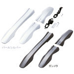 MF-015 ATBフェンダー適応車種/ATB・クロスバイク(26インチ)前後サスペンションフォーク専用、Vブレーキ対応(但し、特殊形状のフレームには取付けできません。)取付方法/フロント:ステアラーチューブ、リヤ:シートポストカラー/ガンメタ※1.ステアラーチューブ内径φ18.5〜φ26.5mm※2.シートチューブおよびシートポスト外径φ22〜φ35mm