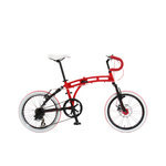 20インチ折りたたみ自転車 217 miragen全長 1480 mm 折りたたみ寸法 855 × 640 × 375 mm 重量 15.0 Kg サドル高 690 - 940 mm ハンドル高 860 - 885 mm ハンドル幅 440 mm タイヤサイズ 20 × 1.5 inch フレームカラー [ツートンカラー]Red Mirage(レッドミラージュ) × Black Nightmare(ブラックナイトメア) フレーム材質 アルミニウム フロントフォーク材質 スチール 変速機 シマノ7段変速 ペダル 固定式ペダル VP-990A シフトレバー シマノ サムシフター 右:7段 フリーホイール MIN:14T × MAX:28T チェーンホイール 52 ブレーキ フロント/ディスクブレーキ:リア/Vブレーキ 最大乗車重量(積荷を含む) 100kg 未満 付属品 工具 ● 取扱説明書(保証書含む) ● タイダウンベルト ● スタンド(本体取付済) ● ナットキャップ×2 ● バルブ形式 英式バルブ(ウッズバルブ) 構成部品フォーク: スチール L:270mm リム: アルミニウム F:20φ×14G×24H, R:20φ×14G×36H スポーク: スチール F:164/166mm, R:179mm/177mm フロントハブ: アルミニウム クイックリリース/ディスクブレーキ 100mm×14G×24H リアハブ: アルミニウム φ3/8φ×135mm×190mm×14G×36H ハンドルバー: アルミニウム W:430mm シートポスト: アルミニウム φ27.2x400mm クランク: アルミニウム 170mm チェーン: 1/2φx3/32φx106LINK ブレーキレバー: アルミニウム ボトムブラケット: カセット式 ワイヤーロック: コイルケーブルロック φ8mm×600mm LEDライト: アルミニウム ホワイトLED 9PC