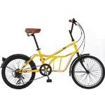 自転車の中央に収納スペースを設けた独自開発新フレームを採用。従来のシティサイクルの概念に囚われず、一からデザインを見なおした新ジャンルのタウンユースミニベロです。その斬新な見た目以外に、安全性、快適性にも配慮。まさに今の時代に求められる新世代のシティサイクルです。 330-YL : Lisboa (リスボン)■ミッドキャビン フレーム中央に設計した容量約20リットルの荷物スペース。■前後フルサイズマッドガード 雨天時の走行で道路からの泥はねを防ぐマッドガード(泥除け)は、広範囲をカバーするフルサイズを採用します。ユーザーへの泥はねは勿論、ミッドキャビンに積載する荷物への泥はねもブロック。カラーはタイヤ同色とし、マッドガードを目立たずスタイリッシュにデザインしました。 ■シマノ製7段変速 ちょっとした上り坂でもスイスイ走る、シマノ製の7段変速機を搭載。変速は指先で簡単に行えるサムシフターを採用し、ユーザビリティーへも配慮しました。 ■コンフォート・サドル サドルは左右にスプリングを搭載し、厚めクッションで座り心地のよいコンフォートサドルを採用。サドル側面にシルバーのスタッズが、車体全体にクラシックで上品な印象を与えます。 ■Vブレーキ 制動力が高く、指先によるコントロールがしやすいVブレーキを前後に採用。軽量でメンテナンスも容易です。 ■ハンドル一体型ステム 六角レンチでお好みのハンドル高さに設定ができるハンドル一体型ステム。ステムの固定ボルト部は突起しており、バッグ等のショルダーベルトを引っ掛けることで、タイヤへの巻き込みを防止します。ハンドル位置は高めに取り、状態を起こした姿勢で乗車することが可能です。 ■KMC製チェーン 駆動力を伝えるチェーンには、世界130カ国での採用実績や、高いOEM実績を誇るKMC製を採用。駆動部分の機能性、安全性にも配慮しています。 ■20インチマッドタイヤ 前後タイヤには舗装路を走るロードタイヤと、悪路を走るオフロードタイヤの良いところを兼ね備えたマッドタイヤ(オールウェザータイヤ)を選択し、より多くの使用環境に対応することを想定。雨天走行時でもしっかり路面をグリップします。なお、タイヤ内部の容量が大きく、乗車時の衝撃吸収力にも優れます。 ■製品仕様全長 1550 mm 重量 14.5 kg※ペダル、保安部品(ライト、リフレクター、ベル)、ワイヤーロックを取り外した状態です。 ハンドル高 930 - 1000 mm ハンドル幅 545 mm タイヤサイズ 20 × 1.75 inch フレーム材質 スチール フロントフォーク材質 スチール 変速機 シマノ7段変速 ペダル 固定式ペダル シフトレバー シマノサムシフター右:7段 フリーホイール MIN:14T × MAX:28T チェーンホイール 40 ブレーキ 前後:Vブレーキ バルブ形式 英式バルブ(ウッズバルブ) 付属品工具 リフレクター ベル 専用マッドガード 取扱説明書(保証書含む) スタンド(本体取付済) ナットキャップ×4 ■構成部品フォーク スチール �・25.4 L:285mm リム アルミニウム 20 × 1.5 × 36H スポーク スチール フロントハブ スチール 14G × 36H リアハブ スチール 14G × 126mm × 195mm × 36H ハンドルバー スチール φ25.4 W:520mm ハンドルステム スチール φ22.2 × 130mm シートポスト スチール φ27.2 × 400mm クランク スチール 152mm チェーン KMC / 1/2 × 3/32 ×106L ブレーキレバー アルミニウム ボトムブラケット カップ&コーン