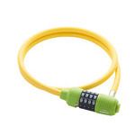 CL-106 VIVID LOCK カラー:イエロー重量 300g サイズ ワイヤーサイズ:φ10mm×900mm (ストレートワイヤー) ・番号変更が簡単で扱いやすいダイヤル式ワイヤーロック・よく目立つビタミンカラー・10,000通りの組合せの中から3ステップで簡単に好きな番号へ変更が可能・開けやすいワンプッシュボタン開錠・操作しやすい大型ダイヤル・狭い部分にワイヤーを通すことが可能な細形設計