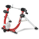 Quattro-C(クワトロC) 新開発、スライドレバーで簡単操作のマグネットブレーキフィットネスからレース本番まで、使い方自由な新カテゴリーのサイクルトレーナー※LiveTraining未対応カラー:レッド重量 5,500g フライホイール重量:0.85kg適合サイズ : 26インチ 〜 700 x 40C (ETRTO 40-559 〜 42-622)設置時寸法:幅700mm × 奥行き520mm × 高さ420mm 付属品:マグライザー、専用クイックレリーズ・持ち運びに便利な軽量タイプ・耐久性に優れたシンプル構造・コンパクトに折りたためて収納に便利・アルミ製軸受けの採用により耐久性と静粛性が向上したシンプルユニット・操作が簡単なスライドレバーで負荷設定が可能なマグネットブレーキ・初心者、女性でも乗りやすい低負荷設定・負荷量は、負荷なし、100、200、300ワットの4段階設定(※いずれも40km/h走行時)・850gの鉄製フライホイールで滑らかなライディング感覚・初めての人でもわかりやすい回転式後輪ハブハンドル・負荷装置ローラーへのタイヤ当たり位置を自在に変更できる両側調整・125〜145mmまでのオーバーロックナット寸法に対応・手になじむデザインのボルト式加圧ノブ・別売りの小径アダプターを使用すると24インチ(ETRTO 25-520)にも対応 注意・制限事項•通常の2輪自転車専用です。タンデムやリカンベントなど他のタイプの自転車では使用しないでください。•後輪ハブ幅125〜140mm のクイックレリーズ式自転車専用です。ハブナットタイプの自転車は使用対象外です。•24インチから29インチ/700C までの幅広い車輪に適合しますが、ブロックタイヤが装着された29erMTBではご使用いただけません。(注意:24インチでの使用は、別売りの小径アダプターをご購入ください)•購入後の本体組み立ては必要ありませんが、定期的なメインテナンスや調整用の工具はご用意ください。•最大の安定を確保するため、必ず添付のクイックレリーズに交換してください。弊社はご自身のクイックのままでの使用における一切のトラブルの責任を負いかねます。•安全のため平坦で水平な床に設置して使用してください。•タイヤやローラーは必ず摩耗するものですが、タイヤ寿命を最大限に伸ばすため、ローラーの後輪タイヤへの押し当て量は正しく調整してください。•負荷調整は必ず車輪が停止してから行なってください。車輪が動いている間に操作すると、手などが車輪に巻き込まれたりして危険です。•高速で回転している車輪や回転部に触れると怪我をします。トレーニング中は小さな子供やペットなどを近づけないでください。