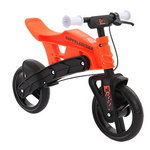 AceBike-BK エースバイク親子で楽しむDOPPELGANGER。お子様にも環境にもやさしいキッズバイク 初めてまたがる自転車だからこそ、最高に楽しい自転車であって欲しい。そのような私たちの想いから誕生したのが、この「AceBike(エースバイク)」です。本体は国際品質検査機関-SGSにも認証される安心・安全な設計で、素材はリサイクル可能な合成樹脂を使用。お子様の成長に合わせてハンドル高、サドル高を多段階で調節することができ、姉妹兄弟間でのシェアにも活躍します。■わずか3.2kgの超軽量設計軽くて強度の高い「合成樹脂」フレーム、グリップやタイヤなどにも「合成樹脂」を使うことで、3.2kgの軽さを実現しました。遊び場への持ち運びもラクラクで、お子様にも嫌がられない超軽量設計です。「軽さ」は保管や移動時にも大きなメリットになります。■環境にやさしいエコ素材 フレーム、タイヤ、グリップなどの部品は、すべてリサイクルが可能。お子様の未来を考え、環境にやさしいエコ素材を使用しています。 ■ブレーキ練習用レバー付属 自転車に乗る上で大切な「ブレーキ」をかける仕草を習慣づけるため、ブレーキ練習用レバーを装着しています。自転車を止めるためにレバーを握る、という反復動作を繰り返し体に覚え込ませることができます。※練習用ブレーキなので制動力は弱く設定しています。通常のキッズバイクと同様に、足裏でブレーキすることと並行して、ブレーキレバーを握る練習をさせてあげてください。■フローリングを傷つけにくいEVAタイヤタイヤはフローリング材へのキズが付きにくい、柔らかいEVA樹脂製タイヤを装着。色移りもしないので、一般的なゴム製タイヤのようにタイヤ痕を付けてしまう心配も要りません。■壁をキズつけにくい、柔らかく丸いグリップ グリップ部分には手のひらにフィットする柔らかいTPO樹脂素材を使用。さらに全体的な形状を丸くデザインし、壁や周囲への攻撃性を低め、周囲にキズをつけにくい仕様としています。■経年劣化しにくいパーツ群 お子様に長く愛用してもらうため、フレーム・タイヤは変色・劣化・変形などの変質を起こしにくい素材を使用。さらに、細かい点ではあるものの、組立ネジにも錆が発生しにくくなるよう防錆処理を施しました。■製品仕様 対象年齢 1歳以上 耐荷重 25kg以下 重量 3.2kg 安全基準 SGSテスト合格済 サイズ W335×L420×H30mm カラー AceBike-BK:ブラック×オレンジ材質 フレーム:TPO樹脂タイヤ:EVA樹脂グリップ:TPR樹脂 JAN CODE AceBike-BK:4582474891453■重要なお知らせ1.公道走行は禁止されています。公道を走行する行為は大変危険です。 不慮の事故を防ぐためにも、絶対に公道を走行させないでください。2.ヘルメットは必ず着用させてください。大切なお子様を守るため、必ずヘルメットを着用させてください。 また小さい頃からヘルメットを被る習慣をつけましょう。3.保護者同伴で遊んでください。遊ぶ時は、必ず保護者が付き添い、お子様から目を離さないでください。