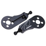 スレッドタイプ チェーンテンショナー ブラックボルトでハブ軸を引くチェーンテンショナー。□仕様□・2個/1セット・素材:#7075-T6 アルミ切削・3/8” アクスル用・付属品: M4x15 2個 25mmボルト 2個 M4ナット 2個・重さ:29g/ぺア・カラー:ブラック