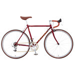 Freedom Sportsフリーダム スポーツ乗り心地の良いクロモリフレームに、ドロップハンドルと14段変速を装備したユーロクラシックアーバンロードバイク。フリーダム スポーツ細身のクロモリフレームと、落ち着いたカラーで、熟年ライダーにもおすすめ。 ※実際の仕様は写真とは異なり、リヤディレイラーとシフトレバーがブラック仕様になります。■ドロップハンドル深い前傾姿勢でスポーティな走りが楽しめるドロップハンドル仕様。■クロモリフレーム細身で軽量ながら、しなやかな乗り心地のクロモリフレーム。■14段変速平坦地から登り坂まで軽快に走れる前2 段×後7段の計14段変速。フロント:50×39Tリヤ:13×15×17×19×21×24×28T ■28Cタイヤ&仏式バルブロードバイクと同じ 700Cタイヤながら乗り心地の良い太めの28Cタイヤ&高圧に耐えられ空気圧調整も容易な仏式バルブ。■製品仕様カラー:ネオダークコスモレッド(OR47)タイプ:700C・14段変速車種略号:AFRS525 重量:12.3kg フレームサイズ:52cm適正身長:166cm〜サドル高さ:86〜100cm 【軽くてさびにも強いアルミパーツ7点】●ギヤクランク ●前後ブレーキ ●シートピラー ●ハンドル ●ハンドルステム ●ブレーキレバー ●リム ■注意事項基本的には、組み立てた状態で発送いたします。梱包の都合により付属の工具で簡単な調整(ハンドルの固定等)をしていただく場合があります。あらかじめご了承くださいますよう、お願いいたします。※乗車前には、必ず点検をお願い致します。