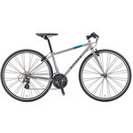 TRYCROSS R トライクロス RSSTB クロモリチューブを採用したクラシカルで細身のクロモリフレームならではの優雅な乗り心地が手軽に楽しめるクロスバイク。SSTB(スパイラル・スプライン・トリプル・バデッド) クロモリチューブ&カンチブレーキを採用したクラシカルな外観。高級感ある色合いと相まって、大人のクロスバイクといった趣。製品特徴■アヘッドステムメンテナンスが容易で軽量かつ高剛性のアヘッドステムを採用。■Quick Release搭載アルミブレーキレバー前後輪の脱着時に解放するブレーキ操作を容易にするQuick Release(赤色)を搭載したアルミブレーキレバー。■カンチブレーキ高いコントルール性とオフロード走行時の泥づまりを防ぐ構造のカンチブレーキを装備。■SSTBチューブミヤタサイクルハイエンドモデル「HandMade in Japan」シリーズにも採用されるSSTBクロモリチューブ。■28Cタイヤ&仏式バルブロードバイクと同じ 700Cながら乗り心地の良い太めの28Cタイヤ&高圧に耐えられ空気圧調整も容易な仏式バルブ。■サドル高速走行時の激しい腿の動きを邪魔しないようシェイプされた軽量・薄型サドル。■24段変速街中からサイクリングロードまで様々な走行シーンに対応する前3段×後8段の計24段変速を装備。■クロモリフォーク細身で充分な剛性を確保しながら、しなやかな乗り心地を提供するクロモリフォーク。■製品仕様カラー: シルバーシャイン(OS60)タイプ:700C・24段変速車種略号:AYTR435重量:11.6kgフレームサイズ:43cm適正身長:155〜168cmサドル高さ :85〜96cm【軽くてさびにも強いアルミパーツ7点】●ギヤクランク ● 前後ブレーキ ●シートピラー ●ハンドル ●ハンドルステム ●ブレーキレバー ●リム■注意事項基本的には、組み立てた状態で発送いたします。梱包の都合により付属の工具で簡単な調整(ハンドルの固定等)をしていただく場合があります。あらかじめご了承くださいますよう、お願いいたします。※乗車前には、必ず点検をお願い致します。