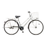 『タフベルト・ガチガチロック』ベルト駆動でソフトな踏み心地。後輪と前輪を同時にロックするガチガチロック搭載。<主要装備>■ベルトモデル:自転車の駆動部がベルトで出来ており、軽い踏み心地で走りなめらか。■ガチガチロック:前輪と後輪を同時にロックするガチガチロック■両立スタンド■ハードランナータイヤ : 外面部が磨耗しにくいタイヤです。■Wピボットハイパワーブレーキ : 金属粒子が緻密で強度が上がり、軽く薄くできる鍛造加工でさらにブレーキの強度がアップ。フロントブレーキに採用し、軽い力でしっかりブレーキング。■サイレントシュー : ブレーキ時のいやな音鳴りがしにくい親切設計。さらに制動力がアップしました。■ステンレスリム : リム、スポークはさびにくく、耐久性に優れたステンレスパーツを採用。長期間美しく乗っていただけます。■極太スポーク : 前輪 No.13後輪No.12の極太スポークを採用。スポーク切れによるトラブルを低減します。※数字が小さくなるほどスポークは太くなっております。■スリム6-LEDビームランプ : 暗い道に頼れる明るさ、ハイパワーLEDランプ搭載。前車輪に発電機を組み込んだハブダイナモ式で、センサーが周囲の明るさを感知して自動的に点灯・消灯します。強制点灯も可能です。■ソーラーオートテール2 : 太陽光で充電するから省エネ。暗くなり、振動を感知すると自動点滅を開始します。■くるピタ : 駐輪時の前輪のフラつきをとめる機能。リングを回すだけで、ハンドルが固定されます。※ハンドルを完全に固定する機能ではありません■タフステンレスバスケット3 : トップ部2本の線材を太くし、変形しにくく、またサビにも強いステンレスバスケット。底面は小物が落ちにくいようにメッシュを採用。幅はスリムに約20%容量アップ!■クッショングリップ : 内部を発泡構造にすることによりソフトな握り心地で手にやさしいツートンクッショングリップです。■インサイドベル : 親指で操作しやすいタテ型タイプで転倒時の破損防止機能です。■サイドガード付サドル : 万一の転倒時にサドルの傷付きや破れをしっかりガードしキレイをキープします。■サドルガードマン : いたずらなどで簡単にサドルが抜きとられない機能です。■ステンレスリヤキャリヤ(クラス18) : さびにくいステンレス製のキャリヤ。最大積載量18kgのクラス18キャリヤのためチャイルドシートを取り付けることはできません。■ディンプルキー :とられにくい両面ディンプルキーを採用。差し込む向きも気にせず解錠できます(キー3個付)。□品番 :B-TFB757F2□カラー:GCホワイト□タイヤサイズ :27□チェンジ :内装5段□質量(重量) :23.0kg□乗車適応身長(目安):144cm以上□サドル高さ(最低地上高〜最高地上高):79.0〜94.5cm■注意事項基本的には、組み立てた状態で発送いたします。梱包の都合により付属の工具で簡単な調整(ハンドルの固定等)をしていただく場合があります。あらかじめご了承くださいますよう、お願いいたします。※乗車前には、必ず点検をお願い致します。