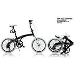 20インチアルミ折りたたみ自転車6段変速付 Schwarz ブラック軽量・高強度アルミのラウンドフォルムフレームに所有欲を満たす、シルバーラメフレークのブラックメタリック塗装を施しました。タイヤ、サドルアウターケーブルをホワイトとしブラック/ホワイトのコントラストを徹底した精悍なイメージのWACHSEN BA-102 Schwarz(シュヴァルツ)は20インチ折りたたみ自転車のスタンダードモデルです。□製品仕様□品番:BA-102ブランド:WACHSEN(ヴァクセン)品名:20インチアルミ折りたたみ自転車6段変速付Schwarz(シュヴァルツ) ブラック寸法(約/cm):149x56x102cm 折りたたみ寸法(約/cm):85x35x68cm サドル高さ(約/cm):77〜95cm 重量(約/kg):13kgカラー:ブラックタイヤカラー:ホワイト■付属品説明書保証書簡易工具ワイヤーロック[長さ:100cm]ライト[電池(別売)]着脱式フェンダー□構成部品□Frame:ALLOY FOLDING TYPE 20"Frornt Foke:20"×BC1-1/8"x173mm, L:285mm φ28.6B.B.set:cup & coneCrank Gear:1/2"x3/32"x52T STEEL BEDCrank:170mm ALLOY BLACKChain:Z-51, 1/2"x3/32"x106LINK BROWNR.Derailleur:RD-TX31, W/DIRECT MOUNTShifter:SL-RS31-6R, REVO SHIFT REAR INDEX 6-SPEEDBrake set:alloy V-brakeBrake Lever:ALLOY SILVER LEVER,Freewheel:MF-TZ06 14~28T 6-SPEED INDEX, BROWN/BLACK(28T)Head Set:1-1/8", 8-PCS, STEEL BEDHandlebar:W540H.Stem:φ25.4Saddle:SPORTS TYPESeat Post:ALLOY φ30.4x500mmPedal:9/16"BS'REF, PVC BLACKSpoke:14GTire:20"x1.75, E/V, WHITE