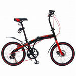 □構成部品□ Frame ALLOY FOLDING TYPE 20" Frornt Foke 20"×BC1-1/8"x173mm B.B.set cup & cone Crank Gear 1/2"x3/32"x52T Chain Z-51 1/2"x3/32"x106LINK RED F.Derailleur R.Derailleur RD-TX35, W/DIRECT MOUNT Shifter TX50-7R 7-SPEED Brake set F:160mmDisk-brake R:Alloy V-brake Brake Lever ALLOY SILVER LEVER, Freewheel 11/13/15/18/21/24/28, 7-SPEED INDEX Head Set 1-1/8", 8-PCS, STEEL BED Handlebar W540 Saddle SPORTS TYPE Seat Post ALLOY φ30.4x500mm Pedal 9/16"BS'REF, PVC BLACK Spoke 14G Tire 20"x1.50, BLACK/RED LINE