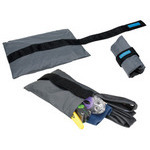 袋をくるくると巻いたベルトで、そのままサドルでも、トップチューブでも、