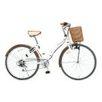 26インチ 折りたたみシティサイクル 6段変速付 ピュアホワイト/チョコブラウン