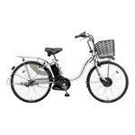 『ビビチャージ・A』走りながら発電・充電できる回生充電システムを採用した最長距離モデル※。(※当社最長距離走行モデル)■バッテリー容量 17.6Ah■充電時間 約 6.0時間■走行距離:(業界統一テスト条件)パワーモード走行 約80kmオートマチックモード走行 約98kmロングモード走行 約180km<主要装備>■低床設計:またぎやすく乗り降りしやすい低床フレーム設計。■スタンド式専用充電器(急速充電):大容量バッテリーに対応した急速充電器。充電時間を大幅に短縮します。■オートOFFシステム:停止して10分以上経つと、自動的に電源が切れる親切機能です。■ハードランナータイヤ :外面部が磨耗しにくいタイヤです。■Wピボットハイパワーブレーキ:金属粒子が緻密で強度が上がり、軽く薄くできる鍛造加工でさらにブレーキの強度がアップ。フロントブレーキに採用し、軽い力でしっかりブレーキング。■サイレントシュー:ブレーキ時のいやな音鳴りがしにくい親切設計。さらに制動力がアップしました。■ステンレスリム:リム、スポークはさびにくく、耐久性に優れたステンレスパーツを採用。長期間美しく乗っていただけます。■大型ドレスガード:保護面積をUPし、巻き込み防止にも効果あり。施錠時に手が触れにくい実用性も配慮。■スリム6-LEDビームランプS:センター配置でタイヤの影が出ない6灯の白く明るいLEDがワイドに照らします。■ソーラーオートテール2:太陽光で充電するから省エネ。暗くなり、振動を感知すると自動点滅を開始します。■くるピタ:駐輪時の前輪のフラつきをとめる機能。リングを回すだけで、ハンドルが固定されます。※ハンドルを完全に固定する機能ではありません■ワイドスムースイン樹脂バスケット:大容量化でお買い物にも便利なワイドスムースインオリジナル樹脂バスケット。キズやヘコミに強い樹脂製です。■クッショングリップ:内部を発泡構造にすることによりソフトな握り心地で手にやさしいツートンクッショングリップです。■インサイドベル:親指で操作しやすいタテ型タイプで転倒時の破損防止機能です。■ワイヤー内蔵アルミフレーム:外観がスッキリ見えるワイヤー内蔵アルミフレーム。■テールアップサドル:人間工学をもとに開発した、疲れにくくおしりにやさしいサドル形状で、乗車中の負担を軽減します。またサドル端面全周にガードを装備し、転倒時の破れ易いレザー端面を保護します。■ステンレスリヤキャリア(クラス27):重い荷物や後ろチャイルドシート取り付けに適した丈夫なリヤキャリヤ。■ディンプルキー:とられにくい両面ディンプルキーを採用。差し込む向きも気にせず解錠できます(キー3個付)。後輪サークル錠とバッテリーロックのキーが共通になっています。■かろやかタイプ両立スタンド:軽く踏むだけでOK。□品番 :BE-EKA43S□カラー:シャトルシルバー□タイヤサイズ :24□チェンジ :内装3段□質量(重量) :27.9kg□乗車適応身長(目安):138cm以上□サドル高さ(最低地上高〜最高地上高):72.5〜88.0cm■注意事項基本的には、組み立てた状態で発送いたします。梱包の都合により付属の工具で簡単な調整(ハンドルの固定等)をしていただく場合があります。あらかじめご了承くださいますよう、お願いいたします。※乗車前には、必ず点検をお願い致します。