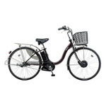 『ビビチャージ・A』走りながら発電・充電できる回生充電システムを採用した最長距離モデル※。(※当社最長距離走行モデル)■バッテリー容量 17.6Ah■充電時間 約 6.0時間■走行距離:(業界統一テスト条件)パワーモード走行 約80kmオートマチックモード走行 約98kmロングモード走行 約180km<主要装備>■低床設計:またぎやすく乗り降りしやすい低床フレーム設計。■スタンド式専用充電器(急速充電):大容量バッテリーに対応した急速充電器。充電時間を大幅に短縮します。■オートOFFシステム:停止して10分以上経つと、自動的に電源が切れる親切機能です。■ハードランナータイヤ :外面部が磨耗しにくいタイヤです。■Wピボットハイパワーブレーキ:金属粒子が緻密で強度が上がり、軽く薄くできる鍛造加工でさらにブレーキの強度がアップ。フロントブレーキに採用し、軽い力でしっかりブレーキング。■サイレントシュー:ブレーキ時のいやな音鳴りがしにくい親切設計。さらに制動力がアップしました。■ステンレスリム:リム、スポークはさびにくく、耐久性に優れたステンレスパーツを採用。長期間美しく乗っていただけます。■大型ドレスガード:保護面積をUPし、巻き込み防止にも効果あり。施錠時に手が触れにくい実用性も配慮。■スリム6-LEDビームランプS:センター配置でタイヤの影が出ない6灯の白く明るいLEDがワイドに照らします。■ソーラーオートテール2:太陽光で充電するから省エネ。暗くなり、振動を感知すると自動点滅を開始します。■くるピタ:駐輪時の前輪のフラつきをとめる機能。リングを回すだけで、ハンドルが固定されます。※ハンドルを完全に固定する機能ではありません■ワイドスムースイン樹脂バスケット:大容量化でお買い物にも便利なワイドスムースインオリジナル樹脂バスケット。キズやヘコミに強い樹脂製です。■クッショングリップ:内部を発泡構造にすることによりソフトな握り心地で手にやさしいツートンクッショングリップです。■インサイドベル:親指で操作しやすいタテ型タイプで転倒時の破損防止機能です。■ワイヤー内蔵アルミフレーム:外観がスッキリ見えるワイヤー内蔵アルミフレーム。■テールアップサドル:人間工学をもとに開発した、疲れにくくおしりにやさしいサドル形状で、乗車中の負担を軽減します。またサドル端面全周にガードを装備し、転倒時の破れ易いレザー端面を保護します。■ステンレスリヤキャリア(クラス27):重い荷物や後ろチャイルドシート取り付けに適した丈夫なリヤキャリヤ。■ディンプルキー:とられにくい両面ディンプルキーを採用。差し込む向きも気にせず解錠できます(キー3個付)。後輪サークル錠とバッテリーロックのキーが共通になっています。■かろやかタイプ両立スタンド:軽く踏むだけでOK。□品番 :BE-EKA43T□カラー:スパークブラウン□タイヤサイズ :24□チェンジ :内装3段□質量(重量) :27.9kg□乗車適応身長(目安):138cm以上□サドル高さ(最低地上高〜最高地上高):72.5〜88.0cm■注意事項基本的には、組み立てた状態で発送いたします。梱包の都合により付属の工具で簡単な調整(ハンドルの固定等)をしていただく場合があります。あらかじめご了承くださいますよう、お願いいたします。※乗車前には、必ず点検をお願い致します。