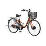 お買い物などの日常使いに活躍。10%容量アップ(※)の8.9Ahバッテリー搭載の中距離走行モデル。※2012年モデルと比較。『ビビチャージ・D』■主要装備<アシスト関連>8.9Ahリチウムイオンバッテリー 乗ったまま充電/「回生充電」機能よりなめらかな加速とアシスト持続/ホイールセンサー自動でムダを見つけて省エネ走行/「エコナビ」機能<車輪まわり>ハードランナータイヤ Wピボットハイパワーブレーキサイレントシューステンレスリム<ライト>スリム6-LEDビームランプソーラーオートテール2<ハンドルまわり>駐輪時の転倒防止/スタピタ2クッショングリップインサイドベル<フレーム>軽くて強い/アレックスフレーム<サドルまわり>ミニヒップアップサドルサドルを盗難から守る/サドルガードマン極太いステンレスリヤキャリヤ(クラス27)<その他>いたずらされにくい/ディンプルキー(キー3個付)軽く踏むだけでスッと立つ/かろやかスタンド2■走行距離:(業界統一テスト条件)※走行距離の測定の方法が変わりました パワーモード走行 約34kmオートマチックモード走行 約47km平地充電走行 約88km■充電時間 約 4.5時間□品番 :BE-EKD432AK2□カラー:レデッシュオレンジ□タイヤサイズ :24□チェンジ :内装3段□質量(重量) :27.7kg□乗車適応身長(目安):139cm以上□サドル高さ(最低地上高〜最高地上高):73.5〜89cm基本的には、組み立てた状態で発送いたします。梱包の都合により付属の工具で簡単な調整(ハンドルの固定等)をしていただく場合があります。あらかじめご了承くださいますよう、お願いいたします。※乗車前には、必ず点検をお願い致します。