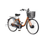 お買い物などの日常使いに活躍。10%容量アップ(※)の8.9Ahバッテリー搭載の中距離走行モデル。※2012年モデルと比較。『ビビチャージ・D』■主要装備<アシスト関連>8.9Ahリチウムイオンバッテリー 乗ったまま充電/「回生充電」機能よりなめらかな加速とアシスト持続/ホイールセンサー自動でムダを見つけて省エネ走行/「エコナビ」機能<車輪まわり>ハードランナータイヤ Wピボットハイパワーブレーキサイレントシューステンレスリム<ライト>スリム6-LEDビームランプソーラーオートテール2<ハンドルまわり>駐輪時の転倒防止/スタピタ2クッショングリップインサイドベル<フレーム>軽くて強い/アレックスフレーム<サドルまわり>ミニヒップアップサドルサドルを盗難から守る/サドルガードマン極太いステンレスリヤキャリヤ(クラス27)<その他>いたずらされにくい/ディンプルキー(キー3個付)軽く踏むだけでスッと立つ/かろやかスタンド2■走行距離:(業界統一テスト条件)※走行距離の測定の方法が変わりました パワーモード走行 約34kmオートマチックモード走行 約47km平地充電走行 約88km■充電時間 約 4.5時間□品番 :BE-EKD632AK2□カラー:レデッシュオレンジ□タイヤサイズ :26□チェンジ :内装3段□質量(重量) :28.4kg□乗車適応身長(目安):142cm以上□サドル高さ(最低地上高〜最高地上高):76〜91.5cm基本的には、組み立てた状態で発送いたします。梱包の都合により付属の工具で簡単な調整(ハンドルの固定等)をしていただく場合があります。あらかじめご了承くださいますよう、お願いいたします。※乗車前には、必ず点検をお願い致します。