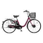 お買い物などの日常使いに活躍。10%容量アップ(※)の8.9Ahバッテリー搭載の中距離走行モデル。※2012年モデルと比較。『ビビチャージ・D』■主要装備<アシスト関連>8.9Ahリチウムイオンバッテリー 乗ったまま充電/「回生充電」機能よりなめらかな加速とアシスト持続/ホイールセンサー自動でムダを見つけて省エネ走行/「エコナビ」機能<車輪まわり>ハードランナータイヤ Wピボットハイパワーブレーキサイレントシューステンレスリム<ライト>スリム6-LEDビームランプソーラーオートテール2<ハンドルまわり>駐輪時の転倒防止/スタピタ2クッショングリップインサイドベル<フレーム>軽くて強い/アレックスフレーム<サドルまわり>ミニヒップアップサドルサドルを盗難から守る/サドルガードマン極太いステンレスリヤキャリヤ(クラス27)<その他>いたずらされにくい/ディンプルキー(キー3個付)軽く踏むだけでスッと立つ/かろやかスタンド2■走行距離:(業界統一テスト条件)※走行距離の測定の方法が変わりました パワーモード走行 約34kmオートマチックモード走行 約47km平地充電走行 約88km■充電時間 約 4.5時間□品番 :BE-EKD632AR□カラー:ベリールージュ□タイヤサイズ :26□チェンジ :内装3段□質量(重量) :28.4kg□乗車適応身長(目安):142cm以上□サドル高さ(最低地上高〜最高地上高):76〜91.5cm基本的には、組み立てた状態で発送いたします。梱包の都合により付属の工具で簡単な調整(ハンドルの固定等)をしていただく場合があります。あらかじめご了承くださいますよう、お願いいたします。※乗車前には、必ず点検をお願い致します。