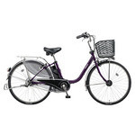 『ビビ・DX』文句なしの充実装備&豊富なカラー。最も愛されるロングセラーモデル□主な特徴■8.9Ahリチウムイオンバッテリー ■ホイールセンサー:よりなめらかな加速とアシスト持続■「エコナビ」機能:自動でムダを見つけて省エネ走行し長距離走行をサポート■タフパワーアシスト:パワフルな新型モーターを搭載しており、よりスムーズで快適な走り出しをサポートします。走行中のアシストの途切れも軽減。■ハードランナータイヤ :外面部が磨耗しにくいタイヤです。■Wピボットハイパワーブレーキ:金属粒子が緻密で強度が上がり、軽く薄くできる鍛造加工でさらにブレーキの強度がアップ。フロントブレーキに採用し、軽い力でしっかりブレーキングします。■サイレントシュー:ブレーキ時のいやな音鳴りがしにくい親切設計。さらに制動力がアップしました。■ステンレスリム:リム、スポークはさびにくく、耐久性に優れたステンレスパーツを採用。長期間美しく乗っていただけます。■大型ドレスガード:保護面積をUPし、巻き込み防止にも効果あり。施錠時に手が触れにくい実用性も配慮。■スリム6-LEDビームランプS:センター配置でタイヤの影が出ない6灯の白く明るいLEDがワイドに照らします。■ソーラーオートテール2:太陽光で充電するから省エネ。暗くなり、振動を感知すると自動点滅を開始します。■スタピタ2:スタンドを立てると同時にハンドルも固定され、ハンドルが左右に振られにくくなります。駐輪時に倒れにくく、お子さまを乗せ降ろしする際に役立ちます。※ハンドルを完全に固定する機能ではありません■ワイドスムースイン樹脂バスケット:大容量化でお買い物にも便利なワイドスムースインオリジナル樹脂バスケット。キズやヘコミに強い樹脂製です。■クッショングリップ:内部を発泡構造にすることによりソフトな握り心地で手にやさしいツートンクッショングリップです。■インサイドベル:親指で操作しやすいタテ型タイプで転倒時の破損防止機能です。■アレックスフレーム:アルミ並みに軽く、強度(抗張力)は従来(普通鋼)の2倍以上で高い評価を得ているパナソニック独自の軽量高張力鋼です。■24型低床化:152mmのショートクランクを採用したこととサドルをヤグラ返しにより固定することで、標準取り付けサドルの最低地上高さを約20mm下げました。背の低い方でもより乗りやすくなった設計です。■ミニヒップアップサドル(ガード付):人間工学をもとに開発した、疲れにくくおしりにやさしいサドル形状で、乗車中の負担を軽減します。また、サドル端面全周にガードを装備し、転倒時の破れ易いレザー端面を保護します。■サドルガードマン:いたずらなどで簡単にサドルが抜きとられない機能です。■極太ステンレスリヤキャリア(クラス27):重い荷物や後ろチャイルドシート取り付けに適した丈夫なリヤキャリヤ。■ディンプルキー:とられにくい両面ディンプルキーを採用。差し込む向きも気にせず解錠できます(キー3個付)。後輪サークル錠とバッテリーロックのキーが共通になっています。■かろやかスタンド2:テコの原理で、軽く踏むだけでスッと立つスタンド。驚くほどラクに立てられます。■ステンレスパーツ:リム、スポーク、リヤキャリヤ、ドロヨケ等にさびにくく、耐久性に優れたステンレスパーツを採用。長期間美しく乗っていただけます。■走行距離:(業界統一テスト条件)※走行距離の測定の方法が変わりました パワーモード走行 約31kmオートマチックモード走行 約39kmロングモード走行 約51km■充電時間 約 4.5時間□品番:BE-ELD43P□カラー:グラマラスパープル□タイヤサイズ :24□チェンジ :内装3段□質量(重量) :26.9kg■乗車適応身長/24型:139cm以上■サドル高さ(最低地上高〜最高地上高)/24型:73.5〜89cm■ご注意事項基本的には、組み立てた状態で発送いたします。梱包の都合により付属の工具で簡単な調整(ハンドルの固定等)をしていただく場合があります。あらかじめご了承くださいますよう、お願いいたします。※乗車前には、必ず点検をお願い致します。