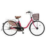 『ビビ・DX』文句なしの充実装備&豊富なカラー。最も愛されるロングセラーモデル□主な特徴■8.9Ahリチウムイオンバッテリー ■ホイールセンサー:よりなめらかな加速とアシスト持続■「エコナビ」機能:自動でムダを見つけて省エネ走行し長距離走行をサポート■タフパワーアシスト:パワフルな新型モーターを搭載しており、よりスムーズで快適な走り出しをサポートします。走行中のアシストの途切れも軽減。■ハードランナータイヤ :外面部が磨耗しにくいタイヤです。■Wピボットハイパワーブレーキ:金属粒子が緻密で強度が上がり、軽く薄くできる鍛造加工でさらにブレーキの強度がアップ。フロントブレーキに採用し、軽い力でしっかりブレーキングします。■サイレントシュー:ブレーキ時のいやな音鳴りがしにくい親切設計。さらに制動力がアップしました。■ステンレスリム:リム、スポークはさびにくく、耐久性に優れたステンレスパーツを採用。長期間美しく乗っていただけます。■大型ドレスガード:保護面積をUPし、巻き込み防止にも効果あり。施錠時に手が触れにくい実用性も配慮。■スリム6-LEDビームランプS:センター配置でタイヤの影が出ない6灯の白く明るいLEDがワイドに照らします。■ソーラーオートテール2:太陽光で充電するから省エネ。暗くなり、振動を感知すると自動点滅を開始します。■スタピタ2:スタンドを立てると同時にハンドルも固定され、ハンドルが左右に振られにくくなります。駐輪時に倒れにくく、お子さまを乗せ降ろしする際に役立ちます。※ハンドルを完全に固定する機能ではありません■ワイドスムースイン樹脂バスケット:大容量化でお買い物にも便利なワイドスムースインオリジナル樹脂バスケット。キズやヘコミに強い樹脂製です。■クッショングリップ:内部を発泡構造にすることによりソフトな握り心地で手にやさしいツートンクッショングリップです。■インサイドベル:親指で操作しやすいタテ型タイプで転倒時の破損防止機能です。■アレックスフレーム:アルミ並みに軽く、強度(抗張力)は従来(普通鋼)の2倍以上で高い評価を得ているパナソニック独自の軽量高張力鋼です。■ミニヒップアップサドル(ガード付):人間工学をもとに開発した、疲れにくくおしりにやさしいサドル形状で、乗車中の負担を軽減します。また、サドル端面全周にガードを装備し、転倒時の破れ易いレザー端面を保護します。■サドルガードマン:いたずらなどで簡単にサドルが抜きとられない機能です。■極太ステンレスリヤキャリア(クラス27):重い荷物や後ろチャイルドシート取り付けに適した丈夫なリヤキャリヤ。■ディンプルキー:とられにくい両面ディンプルキーを採用。差し込む向きも気にせず解錠できます(キー3個付)。後輪サークル錠とバッテリーロックのキーが共通になっています。■かろやかスタンド2:テコの原理で、軽く踏むだけでスッと立つスタンド。驚くほどラクに立てられます。■ステンレスパーツ:リム、スポーク、リヤキャリヤ、ドロヨケ等にさびにくく、耐久性に優れたステンレスパーツを採用。長期間美しく乗っていただけます。■走行距離:(業界統一テスト条件)※走行距離の測定の方法が変わりました パワーモード走行 約31kmオートマチックモード走行 約39kmロングモード走行 約51km■充電時間 約 4.5時間□品番:BE-ELD63R□カラー:レッドジンジャー□タイヤサイズ :26□チェンジ :内装3段□質量(重量) :27.7kg■乗車適応身長/26型:142cm以上■サドル高さ(最低地上高〜最高地上高)/26型:76〜91.5cm■ご注意事項基本的には、組み立てた状態で発送いたします。梱包の都合により付属の工具で簡単な調整(ハンドルの固定等)をしていただく場合があります。あらかじめご了承くださいますよう、お願いいたします。※乗車前には、必ず点検をお願い致します。