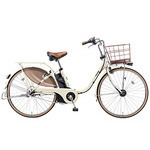 『ビビスタイル・DX』充実機能におしゃれさもプラスした、ビビシリーズ街乗りモデル□主な特徴■8.9Ahリチウムイオンバッテリー ■ホイールセンサー:よりなめらかな加速とアシスト持続■「エコナビ」機能:自動でムダを見つけて省エネ走行し長距離走行をサポート■タフパワーアシスト:パワフルな新型モーターを搭載しており、よりスムーズで快適な走り出しをサポートします。走行中のアシストの途切れも軽減。また、耐久性と走行距離も従来のモーターと比較してアップしました■ハードランナータイヤ :外面部が磨耗しにくいタイヤです。■Wピボットハイパワーブレーキ:金属粒子が緻密で強度が上がり、軽く薄くできる鍛造加工でさらにブレーキの強度がアップ。フロントブレーキに採用し、軽い力でしっかりブレーキング。■サイレントシュー:ブレーキ時のいやな音鳴りがしにくい親切設計。さらに制動力がアップしました。■ステンレスリム:リム、スポークはさびにくく、耐久性に優れたステンレスパーツを採用。長期間美しく乗っていただけます。■大型ドレスガード:保護面積をUPし、巻き込み防止にも効果あり。施錠時に手が触れにくい実用性も配慮。■リトルLEDビームランプ:暗くなると自動で点灯。夜道を明るく照らします。■ソーラーオートテール2:太陽光で充電するから省エネ。暗くなり、振動を感知すると自動点滅を開始します。■スタピタ2:スタンドを立てると同時にハンドルも固定され、ハンドルが左右に振られにくくなります。駐輪時に倒れにくく、お子さまを乗せ降ろしする際に役立ちます。※ハンドルを完全に固定する機能ではありません■大型パイプトップドットバスケット:太い線材を使用した頑丈さ+この車種限定のドット柄がかわいい、大型パイプトップドットバスケット。■クッショングリップ:内部を発泡構造にすることによりソフトな握り心地で手にやさしいツートンクッショングリップです。■インサイドベル:親指で操作しやすいタテ型タイプで転倒時の破損防止機能です。■アレックスフレーム:アルミ並みに軽く、強度(抗張力)は従来(普通鋼)の2倍以上で高い評価を得ているパナソニック独自の軽量高張力鋼です。■ミニヒップアップサドル(ガード付):人間工学をもとに開発した、疲れにくくおしりにやさしいサドル形状で、乗車中の負担を軽減します。また、サドル端面全周にガードを装備し、転倒時の破れ易いレザー端面を保護します。■サドルガードマン:いたずらなどで簡単にサドルが抜きとられない機能です。■極太パイプリヤキャリア(クラス27):丈夫な極太パイプリヤキャリヤ(クラス27)。後ろチャイルドシートも装着可能です。フレームと同一カラーでおしゃれ度がグンとUP。■ディンプルキー:とられにくい両面ディンプルキーを採用。差し込む向きも気にせず解錠できます(キー3個付)。後輪サークル錠とバッテリーロックのキーが共通になっています。■かろやかスタンド2:テコの原理で、軽く踏むだけでスッと立つスタンド。驚くほどラクに立てられます。■走行距離:(業界統一テスト条件)パワーモード走行 約31kmオートマチックモード走行 約39kmロングモード走行 約51km■充電時間 約 4.5時間□品番:BE-ELDS63F□カラー:アイボリーホワイト□タイヤサイズ :26□チェンジ :内装3段□質量(重量) :28.8kg□乗車適応身長/26型:142cm以上□サドル高さ(最低地上高〜最高地上高)/26型:76〜91.5cm■ご注意事項基本的には、組み立てた状態で発送いたします。梱包の都合により付属の工具で簡単な調整(ハンドルの固定等)をしていただく場合があります。あらかじめご了承くださいますよう、お願いいたします。※乗車前には、必ず点検をお願い致します。