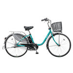 『ビビ・EX』最長距離、ハイスペック。ビビシリーズの最上位モデル□主な特徴■13.2Ah■エコナビ液晶スイッチ3S:走行状態をセンサーで感知し、自動でムダを見つけて省エネ走行する「エコナビ」機能。省エネ走行時にはエコナビランプが緑色に点灯してお知らせ。残りのバッテリー量でどれくらい走ることができるか時間(分)や距離で表示します。■タフパワーアシスト:パワフルな新型モーターを搭載しており、よりスムーズで快適な走り出しをサポートします。走行中のアシストの途切れも軽減。また、耐久性と走行距離も従来のモーターと比較してアップしました■ハブ内蔵スピードセンサー:センサーが自転車の速度を測って※1なめらかな加速とアシストを実現します。センサーはハブに内蔵されて、見た目もスッキリ。駐輪機でもフィット※2しやすい設計です。※1 スピードは表示されません※2 すべての駐輪機に入るわけではありません。■パンクガードマンタイヤ :特殊合成シートを内層することで、金属片やガラス片などが刺さっておこるパンクに強くなりました。■Wピボットハイパワーブレーキ:金属粒子が緻密で強度が上がり、軽く薄くできる鍛造加工でさらにブレーキの強度がアップ。フロントブレーキに採用し、軽い力でしっかりブレーキング。■サイレントシュー:ブレーキ時のいやな音鳴りがしにくい親切設計。さらに制動力がアップしました。■ステンレスリム:リム、スポークはさびにくく、耐久性に優れたステンレスパーツを採用。長期間美しく乗っていただけます。■大型ドレスガード:保護面積をUPし、巻き込み防止にも効果あり。施錠時に手が触れにくい実用性も配慮。■ワイド6-LEDビームランプ2:センター配置でタイヤの影が出ない4灯LEDと側面からの被視認性を高めるサイドマーカー2灯LED付。アシストOFFでも点灯する、独立点灯機能バッテリーライトなので、脚への負担がありません。■ソーラーオートテール2:太陽光で充電するから省エネ。暗くなり、振動を感知すると自動点滅を開始します。■スタピタ2:スタンドを立てると同時にハンドルも固定され、ハンドルが左右に振られにくくなります。駐輪時に倒れにくく、お子さまを乗せ降ろしする際に役立ちます。※ハンドルを完全に固定する機能ではありません■ワイドスムースイン樹脂バスケット:大容量化でお買い物にも便利なワイドスムースインオリジナル樹脂バスケット。キズやヘコミに強い樹脂製です。■クッショングリップ:内部を発泡構造にすることによりソフトな握り心地で手にやさしいツートンクッショングリップです。■インサイドベル:親指で操作しやすいタテ型タイプで転倒時の破損防止機能です。■アレックスフレーム:アルミ並みに軽く、強度(抗張力)は従来(普通鋼)の2倍以上で高い評価を得ているパナソニック独自の軽量高張力鋼です。■ミニヒップアップサドル(ガード付):人間工学をもとに開発した、疲れにくくおしりにやさしいサドル形状で、乗車中の負担を軽減します。また、サドル端面全周にガードを装備し、転倒時の破れ易いレザー端面を保護します。■サドルガードマン:いたずらなどで簡単にサドルが抜きとられない機能です。■極太ステンレスリヤキャリア(クラス27):重い荷物や後ろチャイルドシート取り付けに適した丈夫なリヤキャリヤ。■ディンプルキー:とられにくい両面ディンプルキーを採用。差し込む向きも気にせず解錠できます(キー3個付)。後輪サークル錠とバッテリーロックのキーが共通になっています。■ステンレスパーツ:リム、スポーク、リヤキャリヤ、ドロヨケ等にさびにくく、耐久性に優れたステンレスパーツを採用。長期間美しく乗っていただけます。■走行距離:(業界統一テスト条件)パワーモード走行 約47kmオートマチックモード走行 約54kmロングモード走行 約77km■急速充電時間 約 4.5時間□品番:BE-ELE63G□カラー:ターコイズ□タイヤサイズ :26□チェンジ :内装3段□質量(重量) :29.0kg□乗車適応身長/26型:142cm以上□サドル高さ(最低地上高〜最高地上高)/26型:76〜91.5cm■ご注意事項基本的には、組み立てた状態で発送いたします。梱包の都合により付属の工具で簡単な調整(ハンドルの固定等)をしていただく場合があります。あらかじめご了承くださいますよう、お願いいたします。※乗車前には、必ず点検をお願い致します。