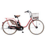 ビビスタイル・DX10%容量アップした(※)8.9Ahリチウムイオンバッテリー搭載。オシャレで実用的なバスケットとリヤキャリヤが魅力です。※2012年発売のビビ・DX・スペシャルデザインと比較。■主要装備8.9Ahリチウムイオンバッテリー よりなめらかな加速とアシスト力/「ダブルセンサーシステム」搭載自動でムダを見つけて省エネ走行/「エコナビ」機能消費カロリー表示スリム6-LEDビームランプソーラーオートテール2ハードランナータイヤ サイレントシューアルミ鍛造ハイパワーブレーキステンレスリム駐輪時の転倒防止/スタピタ2インサイドベルクッショングリップパイプトップドットバスケット軽くて強い/アレックスフレームミニヒップアップサドル(フルガードタイプ)サドルを盗難から守る/サドルガードマンいたずらされにくい/ディンプルキー(キー3個付)軽く踏むだけでOK/かろやかスタンド2■走行距離(業界統一テスト条件)パワーモード:約30kmオートマチックモード:約36kmロングモード:約51km■充電時間:約4.5時間□品番 :BE-ENDS635M□カラー:シェイドピンク(M7M)□タイヤサイズ :26□チェンジ :内装3段□質量(重量) :28.3kg□乗車適応身長(目安):142cm以上□サドル高さ(最低地上高〜最高地上高):76〜91.5cm基本的には、組み立てた状態で発送いたします。梱包の都合により付属の工具で簡単な調整(ハンドルの固定等)をしていただく場合があります。あらかじめご了承くださいますよう、お願いいたします。※乗車前には、必ず点検をお願い致します。