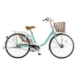 『ビビ・ライト・U』「軽さ」をとことん追求。ビビ・シリーズの最軽量モデル□主な特徴■6.6Ahリチウムイオンバッテリー ■ホイールセンサー:よりなめらかな加速とアシスト持続■「エコナビ」機能:自動でムダを見つけて省エネ走行し長距離走行をサポート■ブラックサイドタイヤ:軽くて耐摩耗性の高いタイヤ。■Wピボットハイパワーブレーキ:金属粒子が緻密で強度が上がり、軽く薄くできる鍛造加工でさらにブレーキの強度がアップ。フロントブレーキに採用し、軽い力でしっかりブレーキング。■サイレントシュー:ブレーキ時のいやな音鳴りがしにくい親切設計。さらに制動力がアップしました。■アルミリム:軽くてサビに強いアルミ素材をリム部分に採用。■リトルLEDビームランプ:暗くなると自動で点灯。夜道を明るく照らします。■ソーラーオートテール2:太陽光で充電するから省エネ。暗くなり、振動を感知すると自動点滅を開始します。■インサイドベル:親指で操作しやすいタテ型タイプで転倒時の破損防止機能です。■ワイヤー内蔵アルミフレーム:外観がスッキリ見えるワイヤー内蔵アルミフレーム。■ミニヒップアップサドルライト:長時間乗っても疲れない、毎日のお買い物に。■サドルガードマン:いたずらなどで簡単にサドルが抜きとられない機能です。■ステンレスリヤキャリヤ(クラス18):さびにくいステンレス製のキャリヤ。最大積載量18kgのクラス。18キャリヤのためチャイルドシートを取り付けることはできません。■ショートクランク:152mmのショートクランクを採用(24型)したことにより、サドルの高さとメインパイプの高さが低くなり、またぎやすくなりました。■ディンプルキー:とられにくい両面ディンプルキーを採用。差し込む向きも気にせず解錠できます(キー3個付)。後輪サークル錠とバッテリーロックのキーが共通になっています。"■走行距離:(業界統一テスト条件)パワーモード走行 約24kmオートマチックモード走行 約29kmロングモード走行 約42km■充電時間 約 4.0時間□品番:BE-ENDU434G□カラー:クリアミント□チェンジ :内装3段□タイヤサイズ :24□質量:22.1kg □乗車適応身長/24型:141cm以上□サドル高さ(最低地上高〜最高地上高)/24型:75.5〜88.5cm■ご注意事項※このモデルにはチャイルドシートは装着できません。基本的には、組み立てた状態で発送いたします。梱包の都合により付属の工具で簡単な調整(ハンドルの固定等)をしていただく場合があります。あらかじめご了承くださいますよう、お願いいたします。※乗車前には、必ず点検をお願い致します。