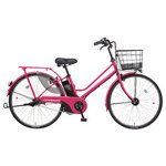 『ララファイブ』10%容量アップ(※)の大容量8.9Ahリチウムイオンバッテリー搭載。モダンポップな通学車として、元気に貴女を応援する一台。※2012年モデルと比較。■主要装備8.9Ahリチウムイオンバッテリー 自動でムダを見つけて省エネ走行/「エコナビ」機能搭載よりなめらかな加速とアシスト力/「ダブルセンサーシステム」搭載スリム6-LEDビームランプソーラーオートテール2ハードランナータイヤサイレントシューハートのスポークアクセサリーアルミ鍛造ハイパワーブレーキステンレスリム駐輪時の前輪のフラつき防止/くるピタパイプドットバスケットクッショングリップインサイドベル軽くて強い/アレックスフレームソフトクッションサドルサドルを盗難から守る/サドルガードマンいたずらされにくい/ディンプルキー(キー3個付)軽く踏むだけでOK/かろやかスタンド2■走行距離:(業界統一テスト条件)※走行距離の測定の方法が変わりました パワーモード走行 約30kmオートマチックモード走行 約36kmロングモード走行 約51km■充電時間 約4.5時間□品番 :BE-ENDV632M□カラー:チェリーピンク□タイヤサイズ :26型□チェンジ :内装3段□質量(重量) :28.2kg□乗車適応身長(目安):142cm以上□サドル高さ(最低地上高〜最高地上高):75.5〜88.5cm基本的には、組み立てた状態で発送いたします。梱包の都合により付属の工具で簡単な調整(ハンドルの固定等)をしていただく場合があります。あらかじめご了承くださいますよう、お願いいたします。※乗車前には、必ず点検をお願い致します。