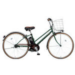 5Ahリチウムイオンバッテリー搭載。スタンダード通勤モデル■主要装備5Ahリチウムイオンバッテリー 自動でムダを見つけて省エネ走行/「エコナビ」機能太陽光充電/ソーラーオートテール2シングルLEDビームランプハードランナータイヤ サイレントシューWピボットハイパワーブレーキ駐輪時のフラつき防止/くるピタ2タフステンレスバスケット2インサイドベルクッショングリップ軽くて強い/アレックスフレーム快適な乗り心地/ソフトクッションサドルサドルを盗難から守る/サドルガードマンいたずらされにくい/ディンプルキー※日本PTA全国協議会の推薦商品■連続走行距離(業界統一テスト条件)パワーモード:約19kmオートマチックモード:約23kmロングモード:約33km■充電時間:約3.0時間□品番 :BE-ENK734G□カラー:グリーン(G6N)□タイヤサイズ :27□チェンジ :内装3段□質量(重量) :25.1kg□乗車適応身長(目安):147cm以上□サドル高さ(最低地上高〜最高地上高):77.5〜92.5cm※専用の両立スタンドはございません。ご了承ください。※チャイルドシートは取り付けできません。基本的には、組み立てた状態で発送いたします。梱包の都合により付属の工具で簡単な調整(ハンドルの固定等)をしていただく場合があります。あらかじめご了承くださいますよう、お願いいたします。※乗車前には、必ず点検をお願い致します。