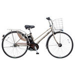 ビビ・EX・シティ10%容量アップした(※)大容量13.2Ahリチウムイオンバッテリー搭載。タフなボディと足回りで長距離をしっかりアシスト。※2012年発売のビビタフネスと比較。■主要装備13.2Ahリチウムイオンバッテリー 自動でムダを見つけて省エネ走行/「エコナビ」機能よりなめらかな加速とアシスト力/「ダブルセンサーシステム」搭載ワイド6-LEDビームランプソーラーオートテール2内装5段変速パンクガードマンタイヤ サイレントシューアルミ鍛造ハイパワーブレーキステンレスリム極太スポーク駐輪時の前輪フラつき防止/くるピタタフステンレスバスケット2インサイドベルクッショングリップ軽くて強い/アレックスフレーム極太ステンレスリヤキャリア(クラス25)※チャイルドシート取付け不可。ソフトクッションサドルサドルを盗難から守る/サドルガードマンいたずらされにくい/ディンプルキー(キー3個付)■走行距離(業界統一テスト条件)パワーモード:約50kmオートマチックモード:約57kmロングモード:約78km■急速充電時間:約4.5時間□品番 :BE-ENL755T□カラー:チタンシルバー(T1H)□タイヤサイズ :27□チェンジ :内装5段□質量(重量) :28.6kg□乗車適応身長(目安):147cm以上□サドル高さ(最低地上高〜最高地上高):77.5〜93cm※この車種は物理的には両立スタンドやチャイルドシートを付けることが可能ですが、両立スタンドをつけると全長が道路交通法の基準1900mmを超えるため、取り付けできません。また両立スタンドを取り付けできないため、チャイルドシートを取り付けられません。ご了承ください。基本的には、組み立てた状態で発送いたします。梱包の都合により付属の工具で簡単な調整(ハンドルの固定等)をしていただく場合があります。あらかじめご了承くださいますよう、お願いいたします。※乗車前には、必ず点検をお願い致します。