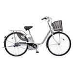 軽量リチウムイオン搭載。操作性の高い手元スイッチで、思いのまま軽快に。■主要装備小型軽量/リチウムイオンバッテリー バックライト搭載の手元スイッチ シングルLEDビームランプ ハードランナータイヤ 極太ステンレスリヤキャリヤ(クラス25) 軽くて強い/アレックスフレーム いたずらされにくい/ディンプルキー サドルを盗難から守る/サドルガードマン ■走行距離:(業界統一テスト条件)※走行距離の測定の方法が変わりましたパワーモード走行 約11kmオートマチックモード走行 約12kmエコモード走行 約17km■充電時間 約2.0時間 □品番 :BE-ENS633S□カラー:プラズマシルバー(S6L)□タイヤサイズ :26□チェンジ :内装3段□質量(重量) :25.2kg□乗車適応身長(目安)26型:142cm以上□サドル高さ(最低地上高〜最高地上高)26型:75.0〜90.5cm基本的には、組み立てた状態で発送いたします。梱包の都合により付属の工具で簡単な調整(ハンドルの固定等)をしていただく場合があります。あらかじめご了承くださいますよう、お願いいたします。*乗車前には、必ず点検をお願い致します。