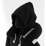 さわり心地の良いマイクロビーズ入りのネックピローに付いたフードは、寝顔をすっぽり隠せる大きさ。