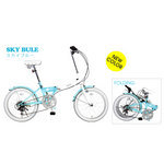 折りたたみ自転車の特徴のフォールディングデバイスを境にトーンを切替えたツートンカラーのフレームにギリギリまで小さくしたフェンダーがキュートなシティバイクの登場です。20インチのタイヤは人気カラーのホワイト仕様。坂道もラクラクの6段変速はシマノ製メインフレームは緩やかにアップラウンドした低床デザインのバリュープライス自転車です。□製品仕様□品番:BGC-N10-SKY品名:20インチカラフル折りたたみ自転車6段変速TRAILER(トレイラー) スカイブルー変速機:シマノ6段変速ペダル:非折りたたみペダルサドル:コイルサスペンションサドルチェーンリング:48T寸法(約/cm):150x57x106折りたたみ寸法(約/cm):86x34.5x66ハンドル高さ(約/cm):101-106サドル高さ(約/cm):70-89 質量(約/kg):16kg材質:フレーム/スチール リム/アルミフレームカラー:スカイブルーxホワイトタイヤカラー:ホワイトセット内容:説明書保証書簡易工具