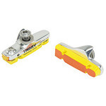 リムとの接触面積を大きくし、制動力を向上。ソリッドな形状によりブレーキ時のシューの変形を少なくしたアルミリム用 ブレーキシュー。