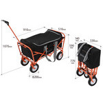 C2-276 ボストンバッグワゴン運ぶ!運ぶ!運ぶ!ボストンバッグになるキャリーワゴン。■大容量キャリーワゴン折りたたみ状態からフレームを広げるだけで、積載容量120Lの大容量キャリーワゴンになります。テント、タープ、寝袋など大量のキャンプギアをまとめて運搬できます。■巨大ボストンバッグ収納部がボストンバッグになります。従来のワゴンと異なり、細かな荷物をまとめて運ぶ、車に積み込む、ワゴンが通りにくい段差などで非常に便利です。『運ぶこと』をとことん追求したボストンバッグ内蔵のキャリーワゴンです。荷物量や路面環境に合わせて、『ワゴンで転がす』『バッグで持ち歩く』の2つの運び方が選べます。これまでのキャリーワゴンでは難しかった、段差のある場所での運搬やオフシーズン中の日常使いにも対応する、心強い『運び屋さん』です。■製品仕様カラー:ブラック×オレンジサイズ:(約)幅510×奥行き910×高さ590mm収納サイズ:(約)幅530×奥行き140×高さ770mm重量(付属品含む):12.7kgフレーム材質:スチールバッグ材質:ポリエステル付属品:フロアマット、キャリーカバー※ 製品等の色は、ご使用になるモニターや、設定によって若干の違いが発生する場合があります。 ※ 製品改良のため予告なくデザイン・仕様を変更する場合があります。 ※ 最大耐荷重量は100kgです。それ以上の重さのものはワゴン内に入れないでください。※ 最大耐荷重量以内であっても、人は乗らないでください。※ 貴重品や壊れやすい物、高温の物、火気が発生する恐れのある物はワゴン内に入れないでください。※ 組み立てや折りたたみ時にフレームの間に指などを挟まないようにご注意ください。初めての時や慣れていない時は安全のため、手袋を着用して行ってください。※ 大きな段差や速い走行などにより、タイヤ部分に強い衝撃を与えないでください。※ ワゴンを使用する際は、定期的に各部のネジに緩みがないかを確認してください。※ ワゴン底面のループは、ワゴンを折りたたむ為の補助ループです。ループを持って、ワゴンを持ち上げないでください。※ 構造上、折りたたみ時や運搬時に衝撃でフレームが干渉し、5mm程度の小さなの塗装剥げとなる場合がございます。※ ハンドル根本近くのくぼみは仕様によるものです。