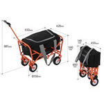 運ぶ!運ぶ!運ぶ!ボストンバッグになるキャリーワゴン。■大容量キャリーワゴン折りたたみ状態からフレームを広げるだけで、積載容量60Lの大容量キャリーワゴンになります。テント、タープ、寝袋など大量のキャンプギアをまとめて運搬できます。■巨大ボストンバッグ収納部がボストンバッグになります。従来のワゴンと異なり、細かな荷物をまとめて運ぶ、車に積み込む、ワゴンが通りにくい段差などで非常に便利です。『運ぶこと』をとことん追求したボストンバッグ内蔵のキャリーワゴンです。荷物量や路面環境に合わせて、『ワゴンで転がす』『バッグで持ち歩く』の2つの運び方が選べます。これまでのキャリーワゴンでは難しかった、段差のある場所での運搬やオフシーズン中の日常使いにも対応する、心強い『運び屋さん』です。■製品仕様カラー:ブラック×オレンジサイズ:(約)幅420×奥行き650×高さ500mm収納サイズ:(約)幅450×奥行き140×高さ600mm重量(付属品含む):8.2kgフレーム材質:スチールバッグ材質:ポリエステル付属品:フロアマット、キャリーカバー※ 製品等の色は、ご使用になるモニターや、設定によって若干の違いが発生する場合があります。 ※ 製品改良のため予告なくデザイン・仕様を変更する場合があります。 ※ 最大耐荷重量は100kgです。それ以上の重さのものはワゴン内に入れないでください。※ 最大耐荷重量以内であっても、人は乗らないでください。※ 貴重品や壊れやすい物、高温の物、火気が発生する恐れのある物はワゴン内に入れないでください。※ 組み立てや折りたたみ時にフレームの間に指などを挟まないようにご注意ください。初めての時や慣れていない時は安全のため、手袋を着用して行ってください。※ 大きな段差や速い走行などにより、タイヤ部分に強い衝撃を与えないでください。※ ワゴンを使用する際は、定期的に各部のネジに緩みがないかを確認してください。※ ワゴン底面のループは、ワゴンを折りたたむ為の補助ループです。ループを持って、ワゴンを持ち上げないでください。※ 構造上、折りたたみ時や運搬時に衝撃でフレームが干渉し、5mm程度の小さなの塗装剥げとなる場合がございます。※ ハンドル根本近くのくぼみは仕様によるものです。