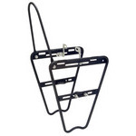フロントの低い位置にVブレーキ台座とフォークレッグで固定する低重心のサイドバッグ用キャリアー。