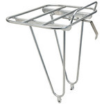 スチールパイプ製の丈夫な大型フロントキャリアー。KCL-3F キングキャリアー ポーティア■カラー:シルバー■中空スチール■26" 〜700C" 対応■L290 x W430 x H470mm■天板 : L290 x W430mm■最大荷重 : 18kg■1.8kg■取付部品付属