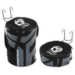 脱「ダサい前カゴ」。5秒で着脱可能な自転車用フロントバッグ。 ■フロントバッグDB2Fカラー:ブラック / グレーサイズ: 直径 245mm×高さ 310mm(フック部分含まず) 重量: 400g 積載可能重量: 8Kg 材質: 生地表側/ポリエステル 生地裏側/ポリウレタン フック部分:鉄 従来の自転車用前カゴには無かったデザイン性、手軽さを追求したDOPPELGANGER® 流のフロントバッグ登場。自転車のデザイン性を崩すことのない、DOPPELGANGER® ならではのグラフィカルなプリント。フックをハンドルバーに引っかけるだけで自転車に取り付けることができるので、買い物のときなど、外してそのままバッグとして使用することができます。また、生地の裏側にポリウレタンをコーティングしており、防水性も備えています。