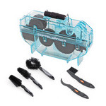 手を汚さずチェーンクリーニング。自転車を長く愛用するためのクリーナーセット DMT193-BK ■チェーンクリーナー チェーンクリーナーの素材には耐熱性、耐薬品性に優れ、高い透明性を有したPCTA樹脂を使用。リサイクルが容易で環境にもやさしい素材です。■握りやすいグリップデザイン 力が加わりやすいグリップ部にはソフトラバーを配置し、手や腕の負担を軽減します。 ■専用収納ケース付属 使用していないときもでもまとめて保管できるよう専用収納ケースを付属しています。 ■製品仕様 サイズ ブラシ3種:全長270 mmブラシ2種:全長225 mmチェーンクリーナー:H:120 x W:170 x D:35 mm (持ち手含まず) 重量 610g カラー ブラシ:ブラックチェーンクリーナー本体:ライトブルー 材質 ブラシ3種:ポリプロピレンブラシ2種:ナイロンチェーンクリーナー:PCTA ご注意事項•本製品の不具合の如何に関わらず、本製品以外での補償はいたしかねます。•各数値は計測方法により異なります。•製品等の色は、ご使用になるモニターや、その設定によって若干の違いが発生する場合があります。•製品改良のため予告なく価格、色、デザイン、仕様等を変更する場合があります。•弊社製品の類似品・模倣品にご注意下さい。製品に関するご質問・ご不明点等についてはこちらまでお問い合せください。